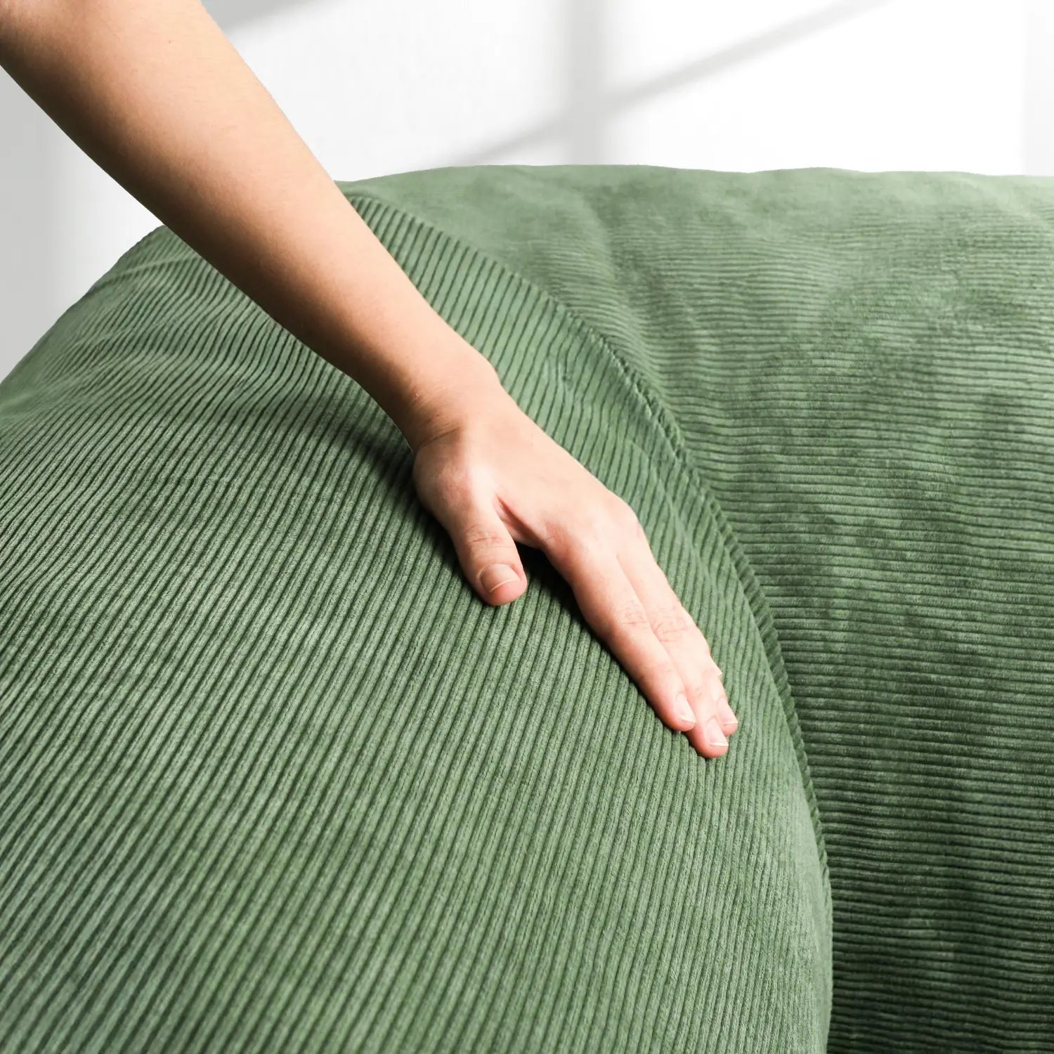 The HYGGE TEDDY+ SOFA is made with super comfy and durable materials. It’s wrapped in Oeko-Tex certified velvet corduroy, so it’s soft, safe, and sustainable. The seat has a combo of pocket springs and memory foam—so you get both support and that comfy sink-in feel. The arms are filled with granulated foam for a plush, relaxed vibe.