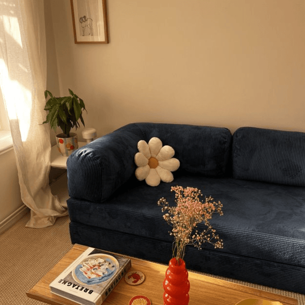 To clean your Teddy Sofa+, just remove the cover, turn it inside out, and machine wash on a gentle cycle.